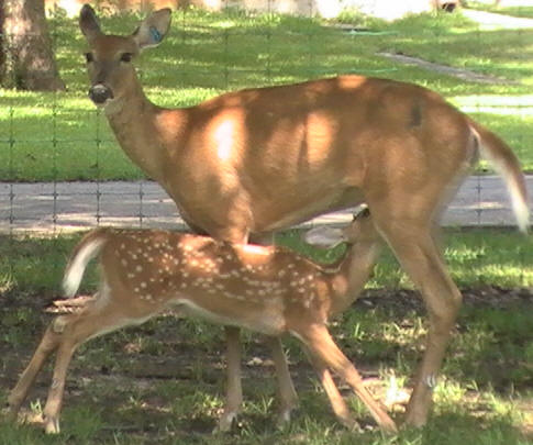 wound sister to Louisiana Geronimo (pictures above), Doe Blue 43 "Doux Geronimo" she was bred to DeWalt and has one doe fawn with her now (Yellow 1-Doux DeWalt).Louisiana Trophy Whitetails 8 years CWD monitored since 2003, TB Accredited and Brucellosis Certified Owner: Charlie LeDoux |